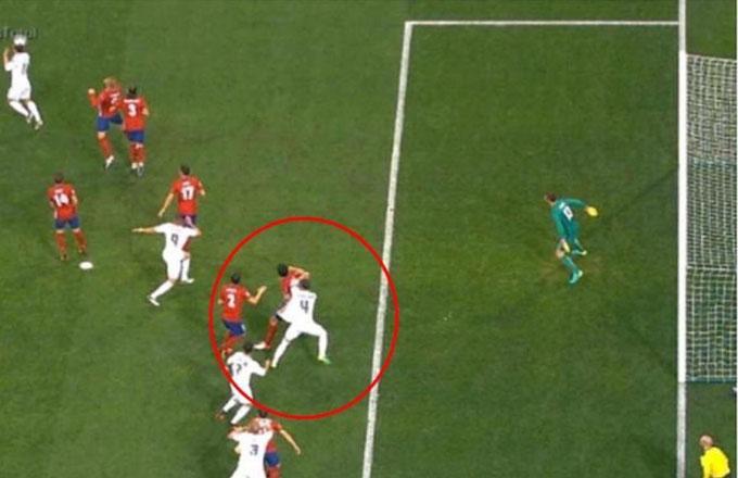 Bale đã giơ khuỷu tay vào mặt Juanfran đúng khoảnh khắc Ramos bật lên đánh đầu ghi bàn