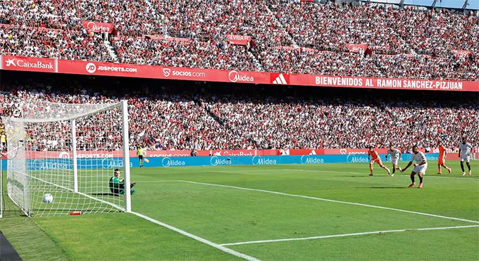 Ngay phút thứ 10 của trận đấu, Romero và Araújo tranh bóng ngay sát vòng cấm địa của Barca cho đến khi cầu thủ Sevilla ngã xuống gần vạch vôi khi bóng lăn ra ngoài. Ban đầu trọng tài Muniz Ruiz không thổi còi, nhưng Del Cerro Grande từ phòng VAR đã ra tín hiệu mời ông đến để xem lại tình huống trên sân. Sau khi hội ý, trọng tài đã cho đội chủ nhà hưởng một quả phạt đền, và Alexis Sánchez thực hiện thành công khi đanh bại đồng đội cũ tại Arsenal, Szczesny.