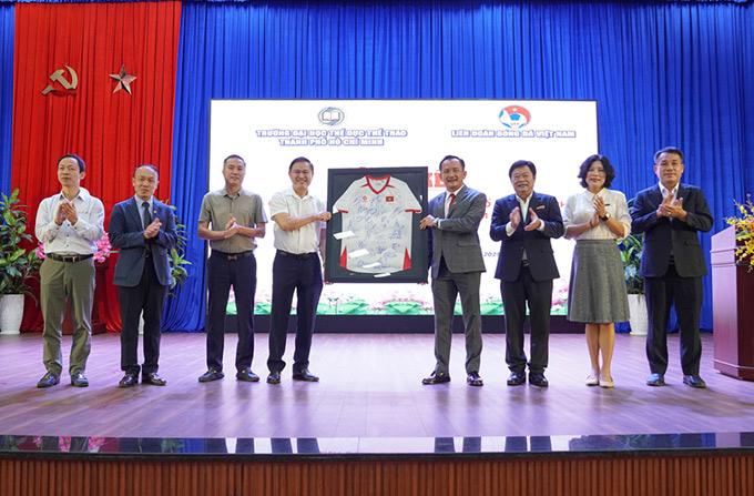 TS. Võ Quốc Thắng - Hiệu trưởng Trường ĐH TDTT TP.HCM khẳng định, thỏa thuận hợp tác giữa hai đơn vị là dấu mốc quan trọng, mở ra chương trình hợp tác toàn diện, bền vững hướng đến mục tiêu chung: đào tạo và phát triển nguồn nhân lực bóng đá Việt Nam chất lượng, chuyên nghiệp và hội nhập quốc tế. TS. Võ Quốc Thắng nhấn mạnh, thỏa thuận hợp tác hôm nay mở ra nhiều cơ hội phối hợp trong đào tạo huấn luyện viên, trọng tài, cán bộ quản lý bóng đá; chia sẻ kinh nghiệm, dữ liệu và nghiên cứu khoa học; tạo điều kiện cho sinh viên được học tập, trải nghiệm và tham gia các hoạt động chuyên môn của LĐBĐVN cũng như các CLB, trung tâm đào tạo bóng đá trên cả nước.