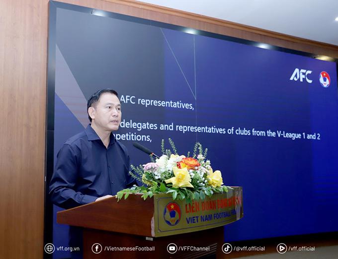“Một số thành quả đạt được là các sân vận động được nâng cấp, đào tạo trẻ được chú trọng, minh bạch trong quản trị để có được nền tảng bóng đá phát triển, tạo tiền đề để tiến ra khu vực. Thời gian qua, LĐBĐVN cùng các câu lạc bộ đã từng bước khắc phục các tiêu chí, công tác cấp phép được thực hiện theo yêu cầu của AFC và LĐBĐVN. Tuy nhiên, cũng cần nhìn nhận hạn chế trong bối cảnh AFC nâng cao tiêu chuẩn. Đây là thời điểm để chúng ta quyết tâm, cố gắng hơn để vượt qua những thách thức”, Phó chủ tịch Trần Anh Tú nhấn mạnh.
