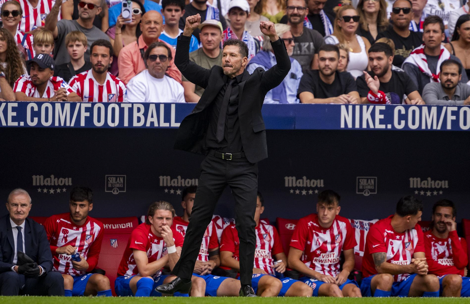 Simeone chỉ đạo Atletico bên ngoài sân ở trận thắng Real.