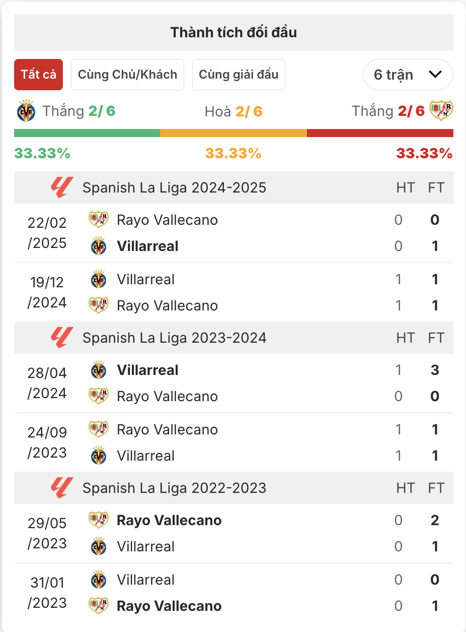 Phân tích dữ liệu chuyên sâu Villarreal vs Vallecano