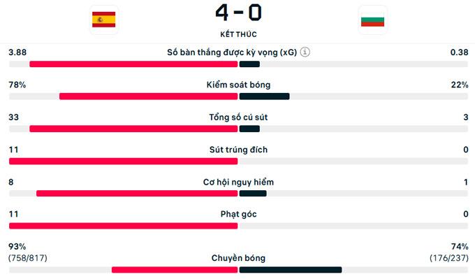 Tây Ban Nha thắng Bulgaria 4-0, màn trình diễn áp đảo của La Roja