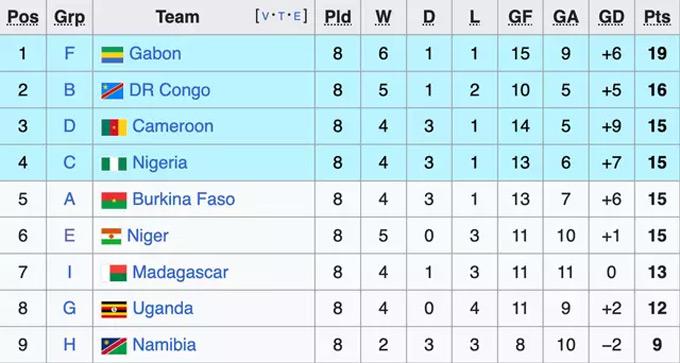 Kết quả là Nigeria, cùng với Gabon, CHDC Congo và Cameroon, trở thành 4 đội nhì bảng xuất sắc nhất, tiếp tục tranh vé dự World Cup 2026.