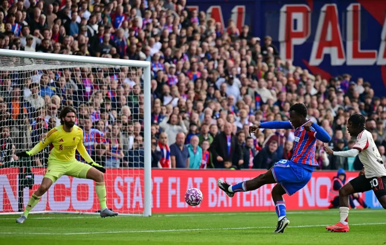 Eddie Nketiah sút tung lưới Liverpool, ấn định chiến thắng 2-1 cho Crystal Palace, sau một pha ném biên dài.